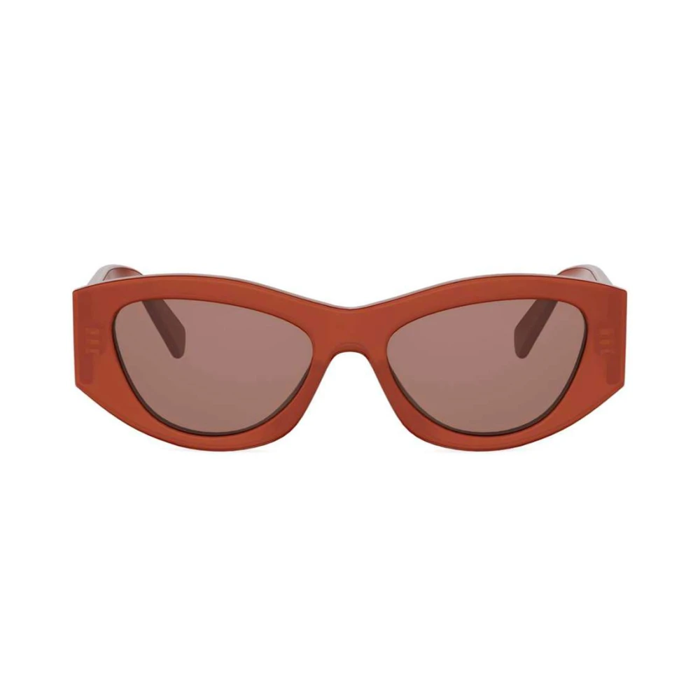 Os óculos de sol Celine Triomphe apresentam formato geométrico em acetato na cor laranja e é adornado com a icônica logo Triomphe em dourado nas hastes.