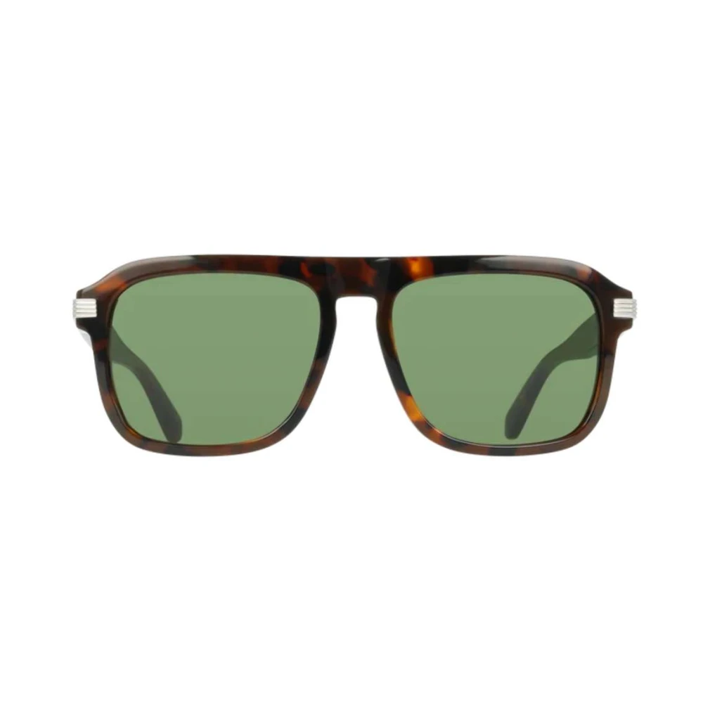 Os óculos de sol Ferragamo SF2087S apresentam armação em acetato tortoise, complementados com lentes em tom verde e adornados com a logo em metal nas hastes.