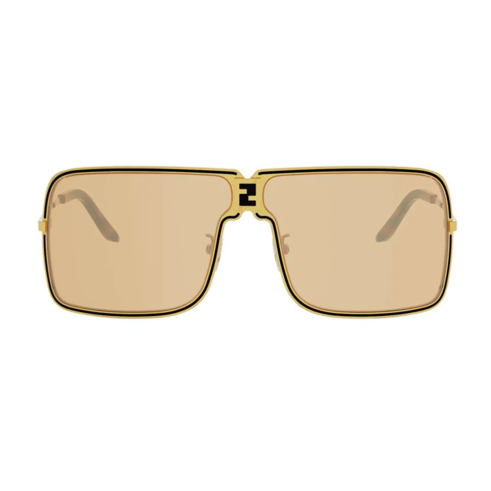 Os óculos de sol Fendiness apresentam formato máscara em metal dourado e logo FF na ponte, as lentes são em tom âmbar com efeito flash dourado e as ponteiras de acetato tortoise finalizam o modelo.