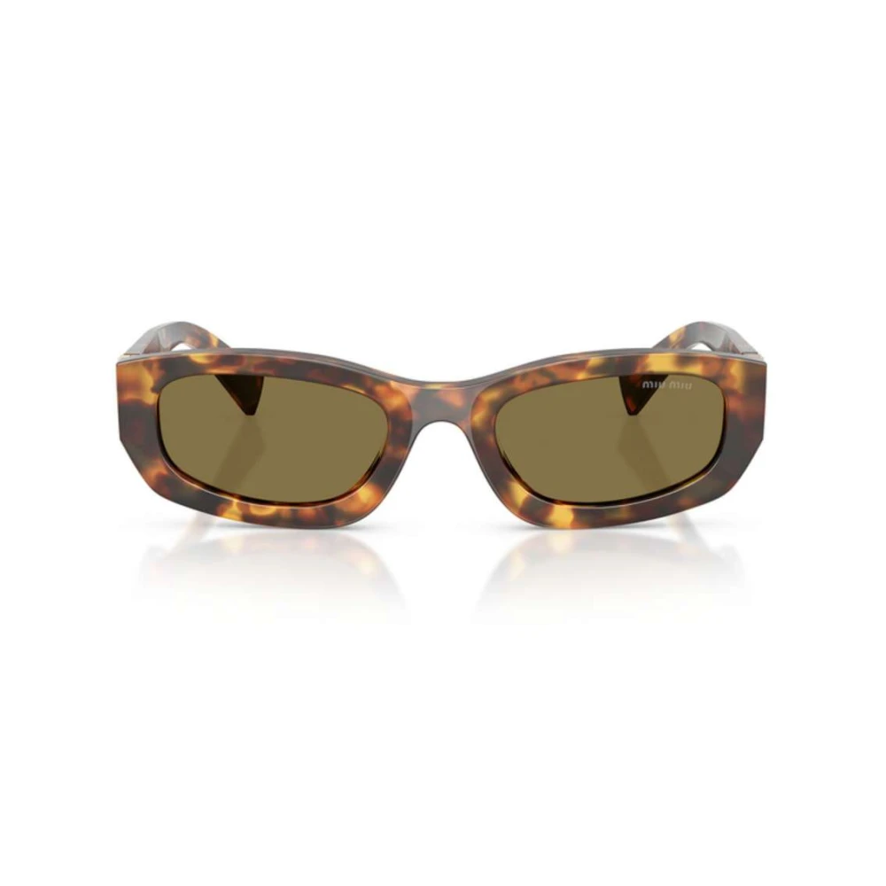 Os óculos de sol Miu Miu MUB04S apresentam formato retangular ousado em acetato havana mel, combinado com lentes verdes e adornados com a logo nas hastes.
