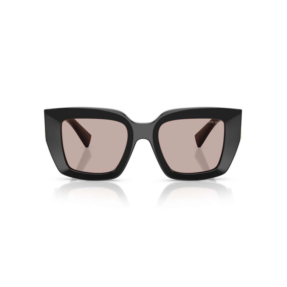 Os óculos de sol Miu Miu B05S apresentam design lúdico com estilo vanguardista, com silhueta marcante, o modelo conta com formato quadrado em acetato preto combinado com lentes marrons e finalizados com a logo em dourado.