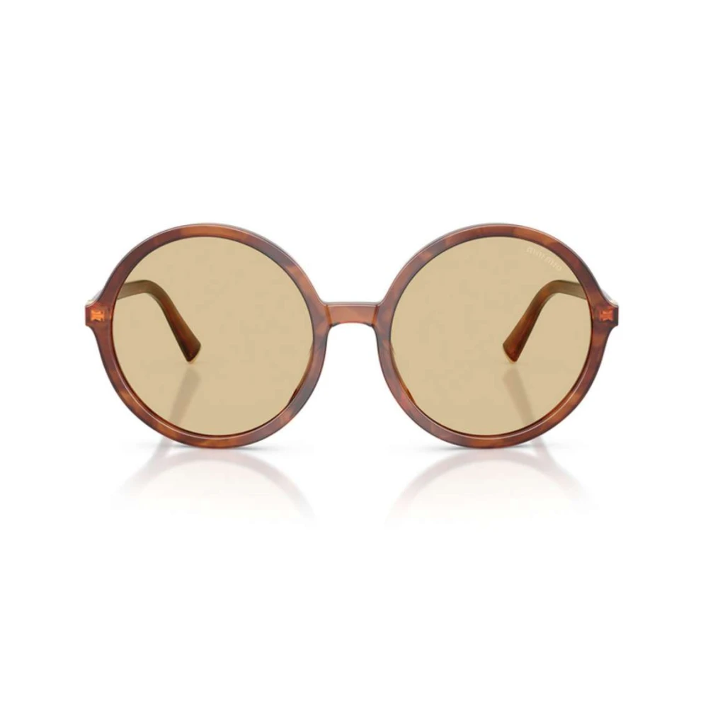 Os óculos de sol Miu Miu Regard são reinterpretados em uma nova versão oversized e com charme vintage, a armação em acetato apresenta silhueta clássica redonda, caracterizadas por aros finos e as hastes são decoradas com a logo em dourado.