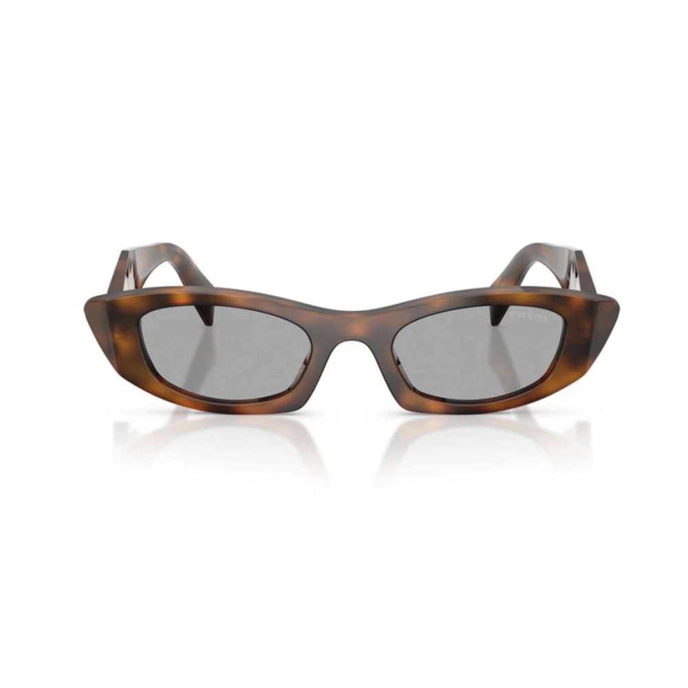 Os óculos de Sol Prada PR B16 contam com a mistura deslumbrante do luxo italiano e design inovador, confeccionados com materiais premium, o modelo apresenta um formato cat eye em acetato tortoise e é complementado com lentes cinzas e hastes decoradas com a logo.