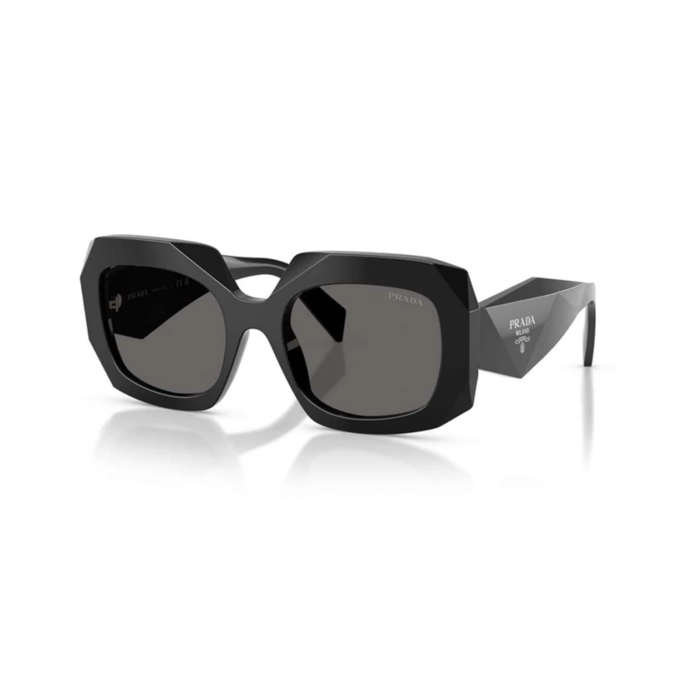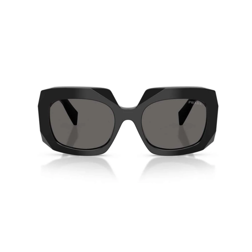 Os óculos de Sol Prada PR B23 apresentam formato quadrado arrojado, combinando design inovador com sofisticação, o modelo possui estética única, confeccionados em acetato na cor preto, o modelo é finalizado com lentes cinzas e hastes decoradas com a logo.