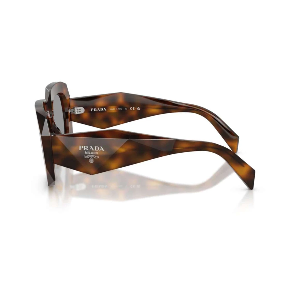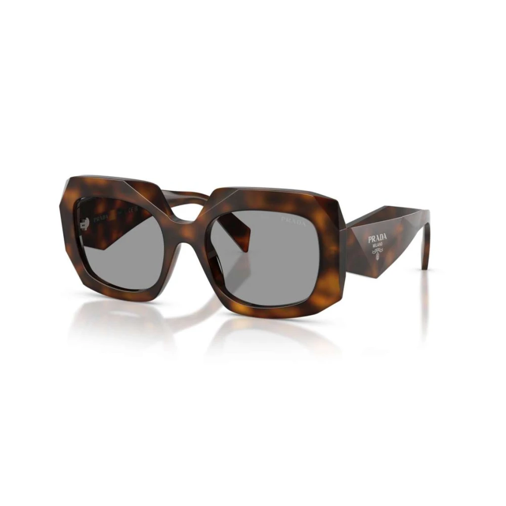 Os óculos de Sol Prada PR B23 apresentam formato quadrado arrojado, combinando design inovador com sofisticação, o modelo possui estética única, confeccionados em acetato na cor tortoise, o modelo é finalizado com lentes cinzas e hastes decoradas com a logo.
