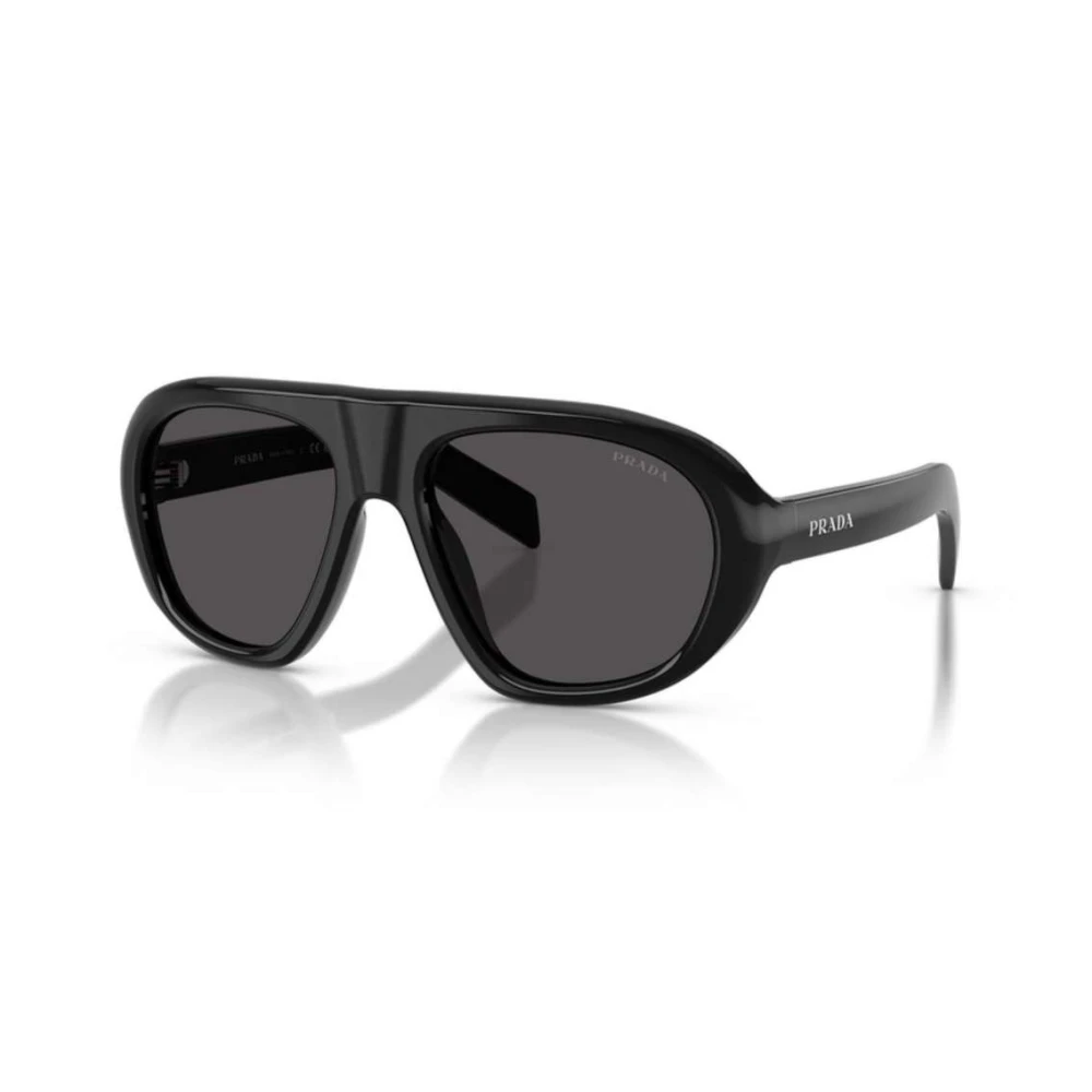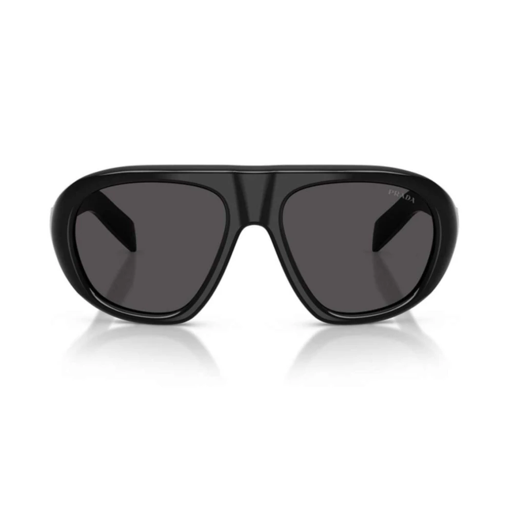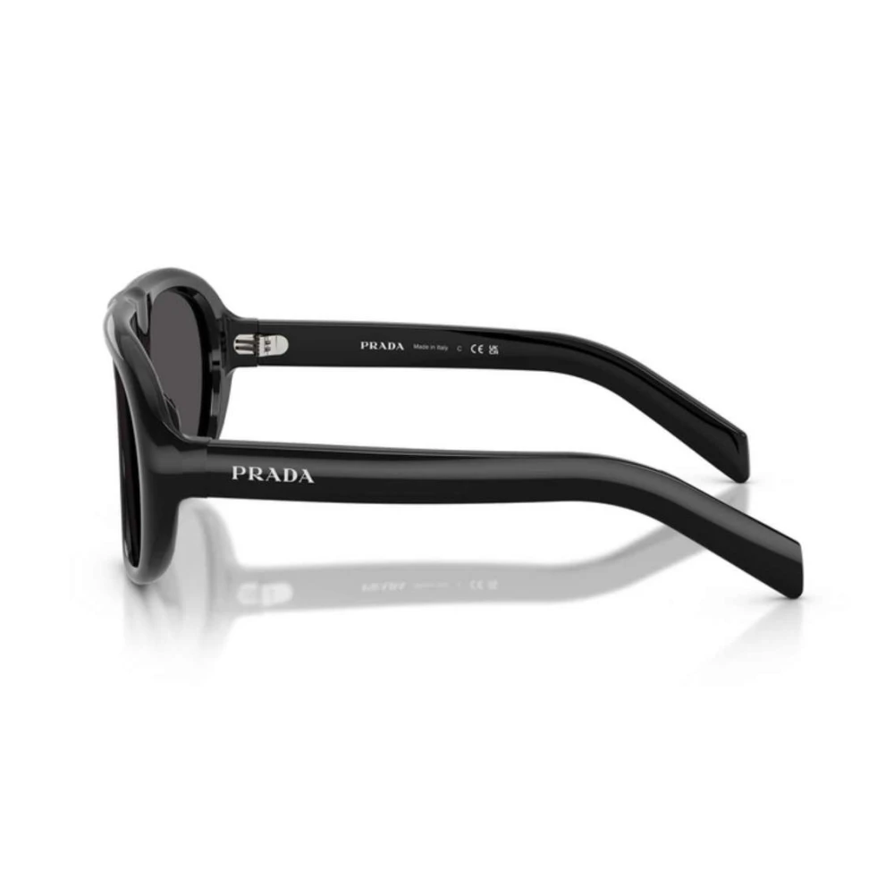 Os óculos de Sol Prada PR C05 personificam a essência da marca, combinando elegância com toque moderno, o modelo conta com formato arrjoado em acetato preto, complementado com lentes cinzas e adornado com a logo nas hastes.