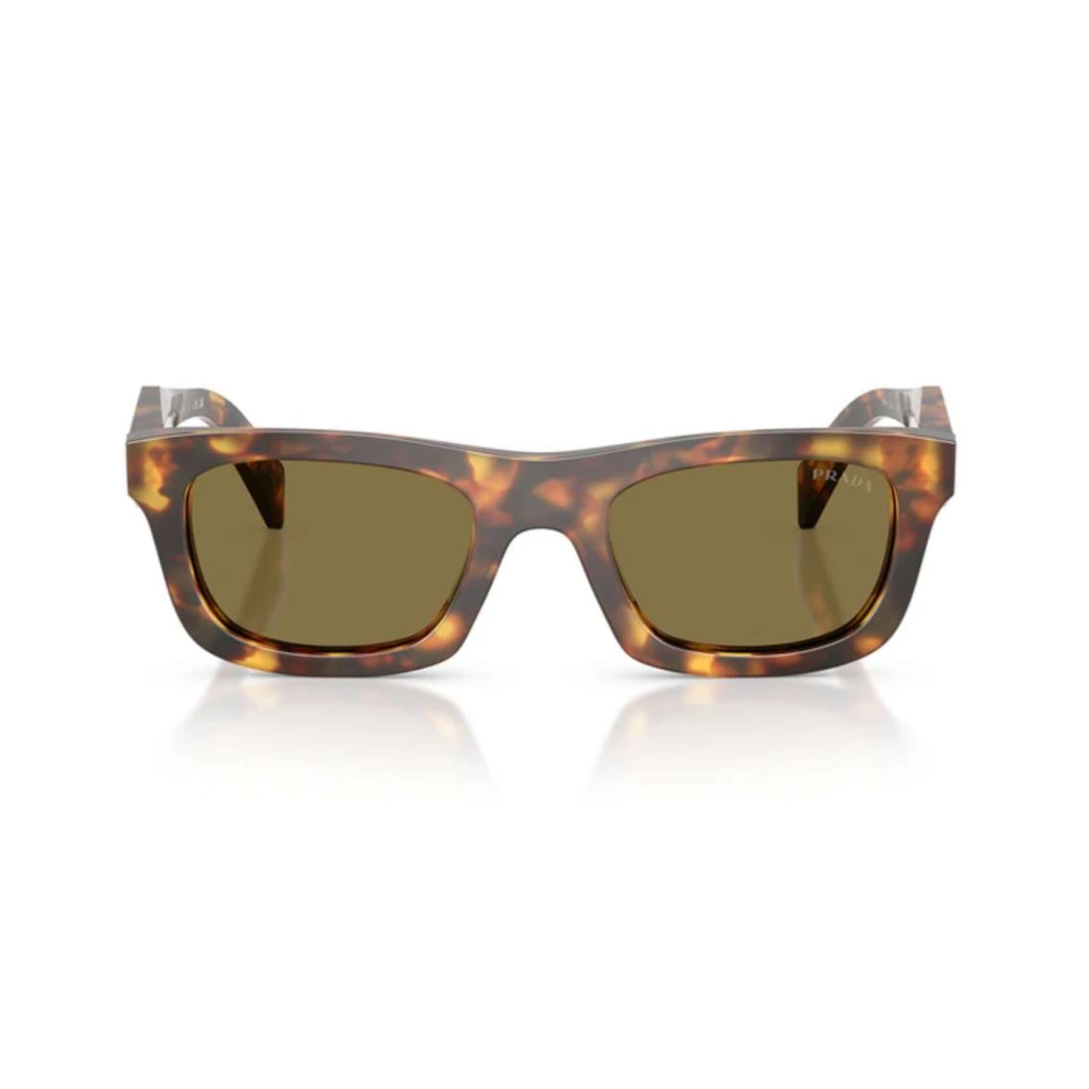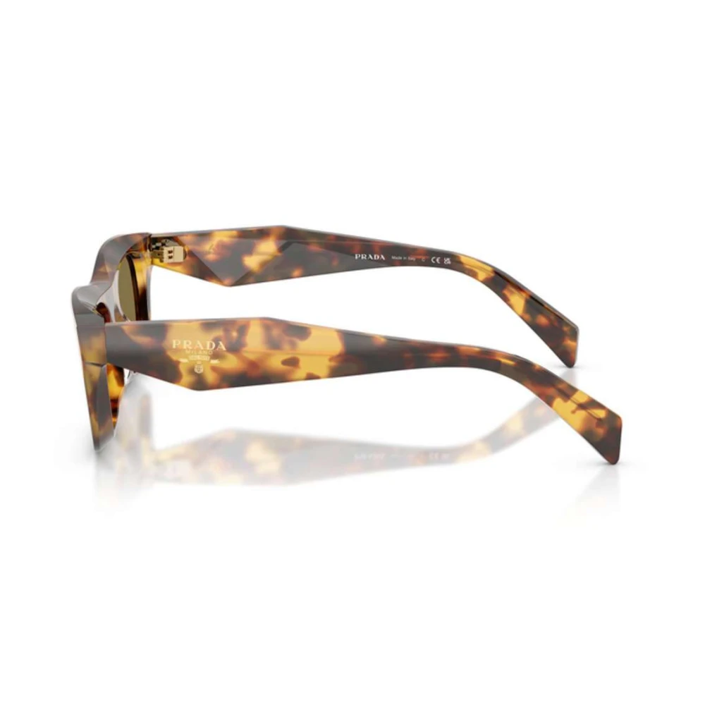 Os óculos de Sol Prada PR C06 foram projetados para quem aprecia estética sofisticada, o modelo é em acetato havana mel, combinado com lentes verdes, o modelo é finalizado com a logo em dourado nas hastes.