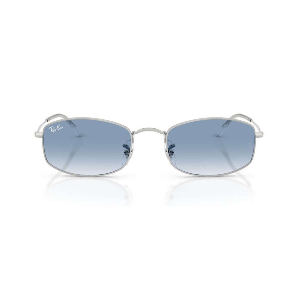 Os óculos de sol Ray Ban RB3832 apresentam uma combinação perfeita de design inovador e charme atemporal, com formato irregular em metal prata, o modelo é complementado com lentes degradê em azul e ponteiras em acetato translúcido.