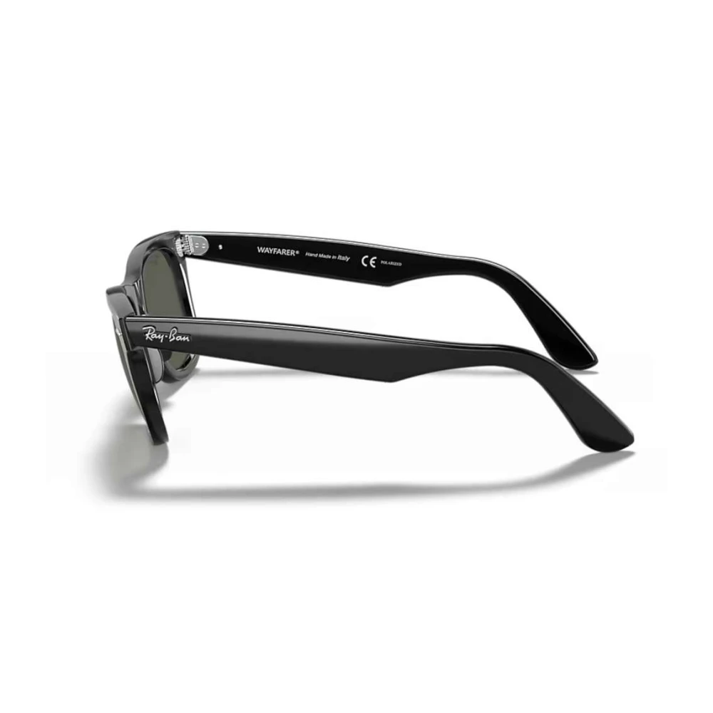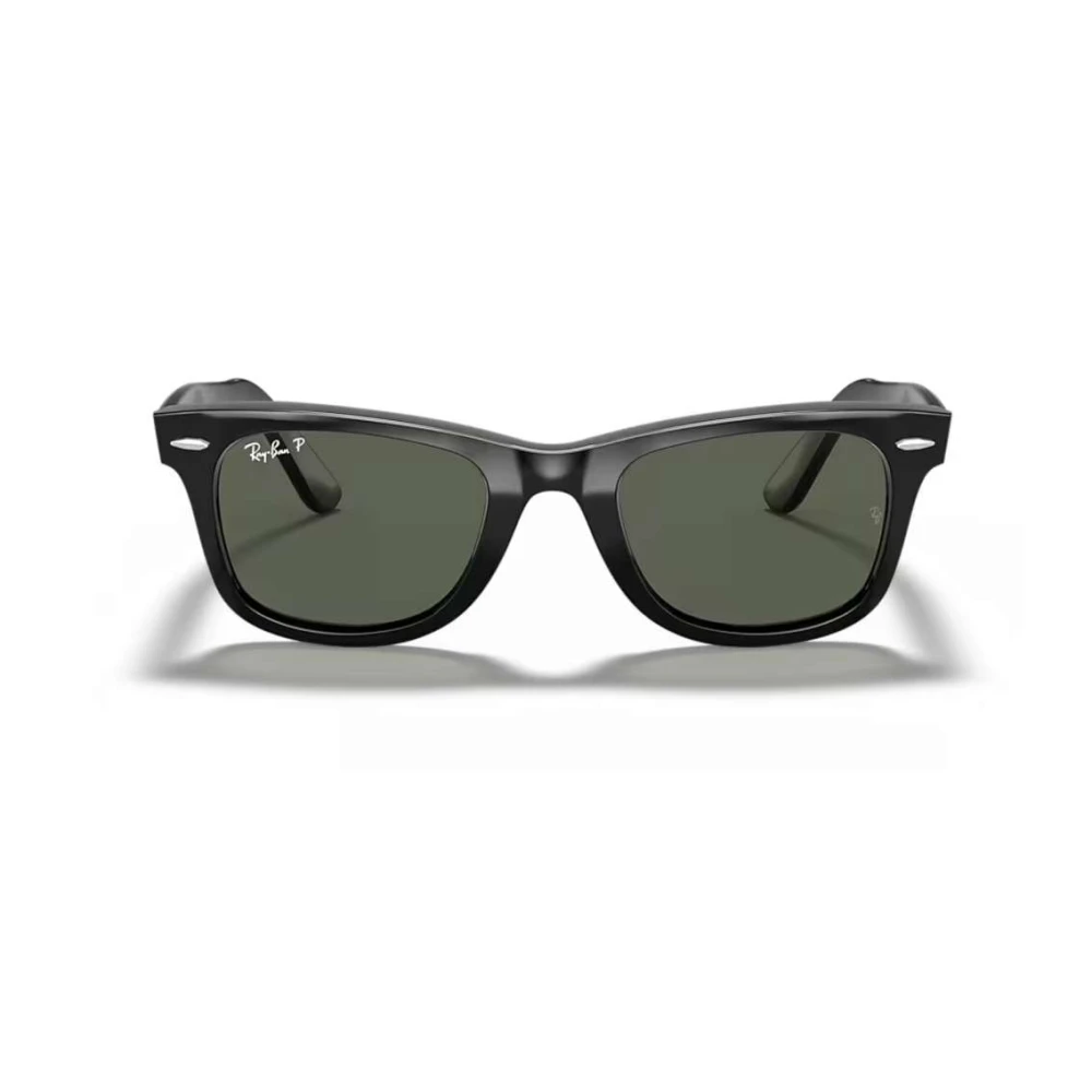 Os óculos de sol Ray Ban Wayfarer são clássico modernos, o modelo icônico está na moda desde 1952, caracterizado por seu formato quadrado em uma armação de acetato preto e lentes G-15, o modelo é finalizado com a logo nas hastes.