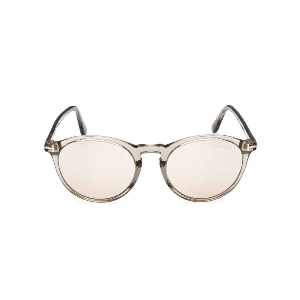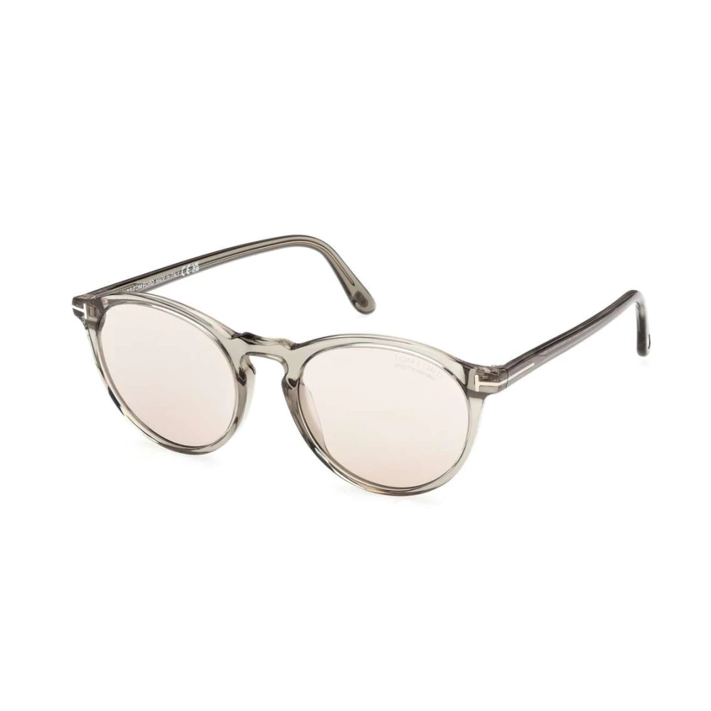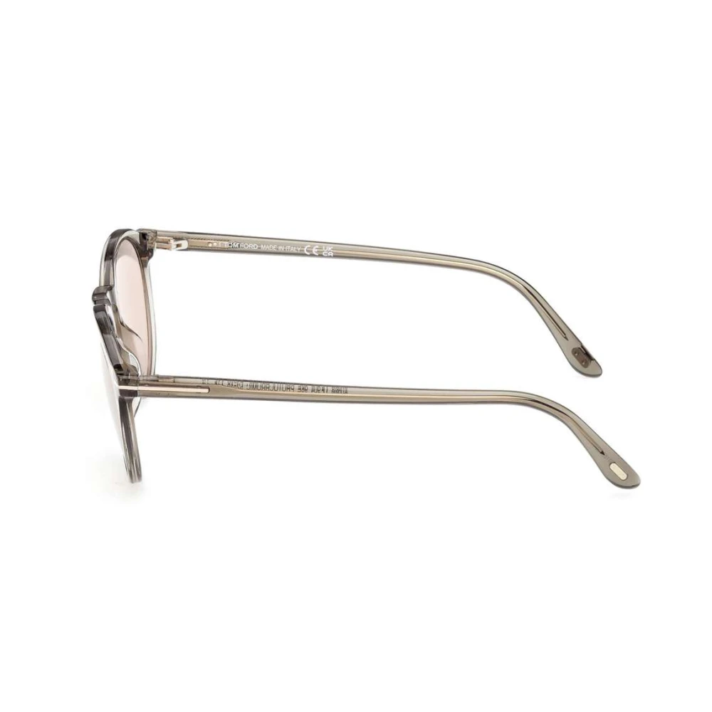 Os óculos de sol Tom Ford Aurele, apresentam um formato redondo clássico em acetato cinza translúcido, ponte chave e lentes fotocromáticas.
