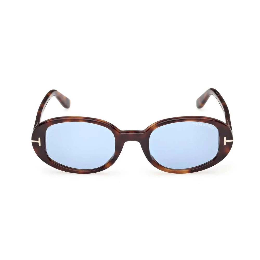 Os óculos de sol Tom Ford Iggy apresentam formato oval em acetato tortoise, as lentes são em tom azul claro e o modelo é adornado com a logo na frontal.