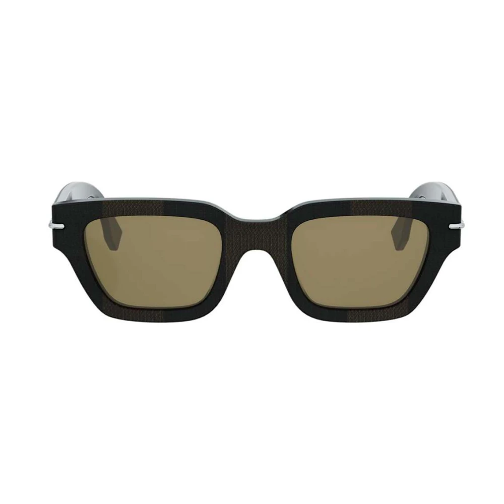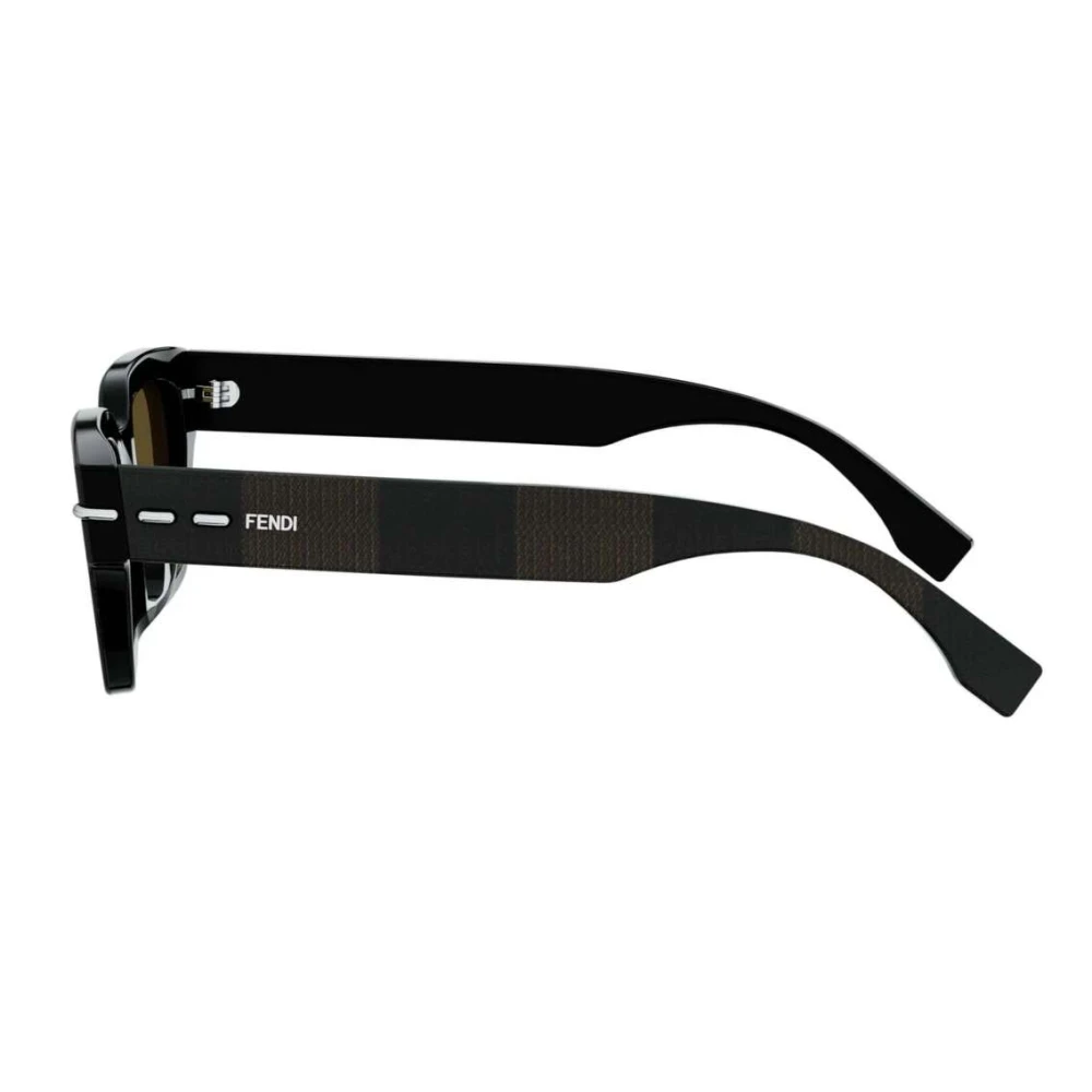 Os óculos de sol Fendi Selleria apresentam formato quadrado em acetato com estampa Pequin listrada em marrom, adornados com três pontos de costuras metálicas em relevo nas hastes, o modelo é finalizado com lentes marrons.