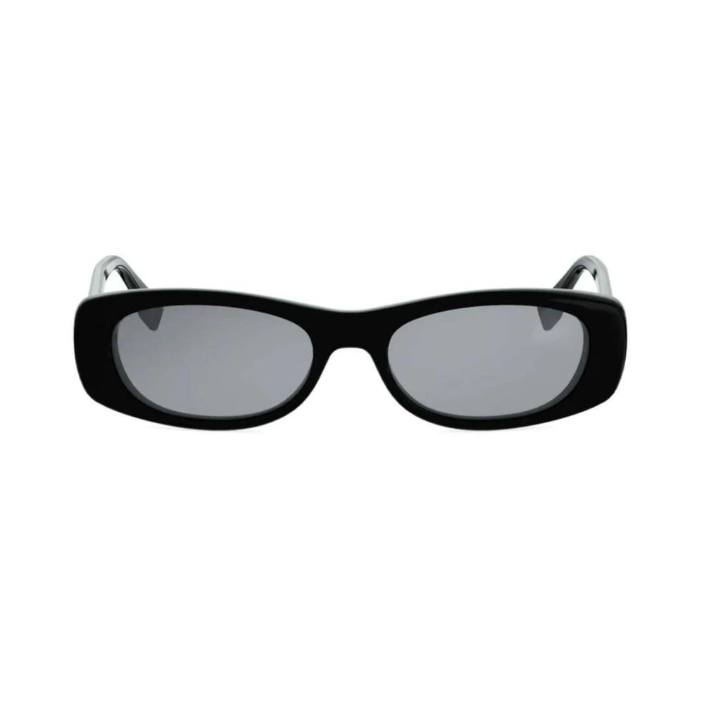 Os óculos de sol Fendi Squared exibem formato retangular em acetato na cor preto, o modelo é complementado com lentes cinzas e finalizado com a logo nas hastes.