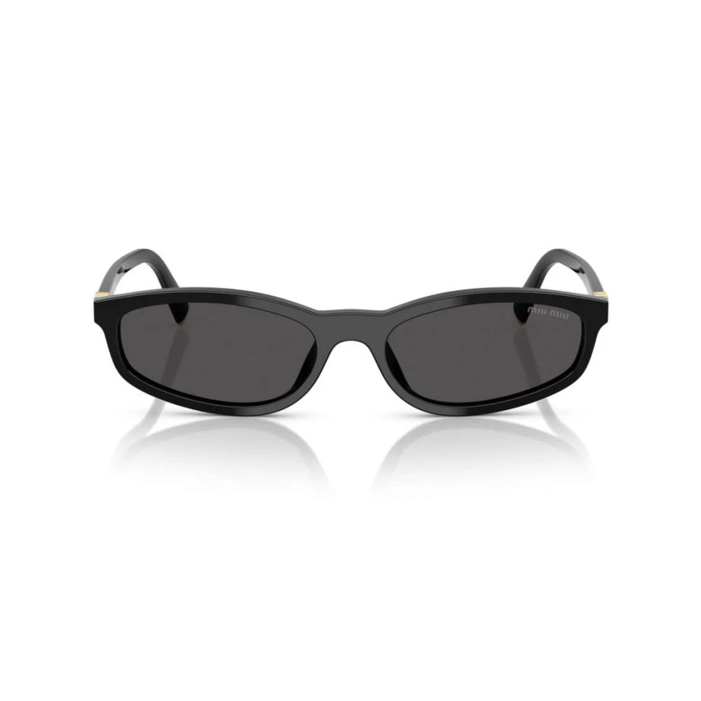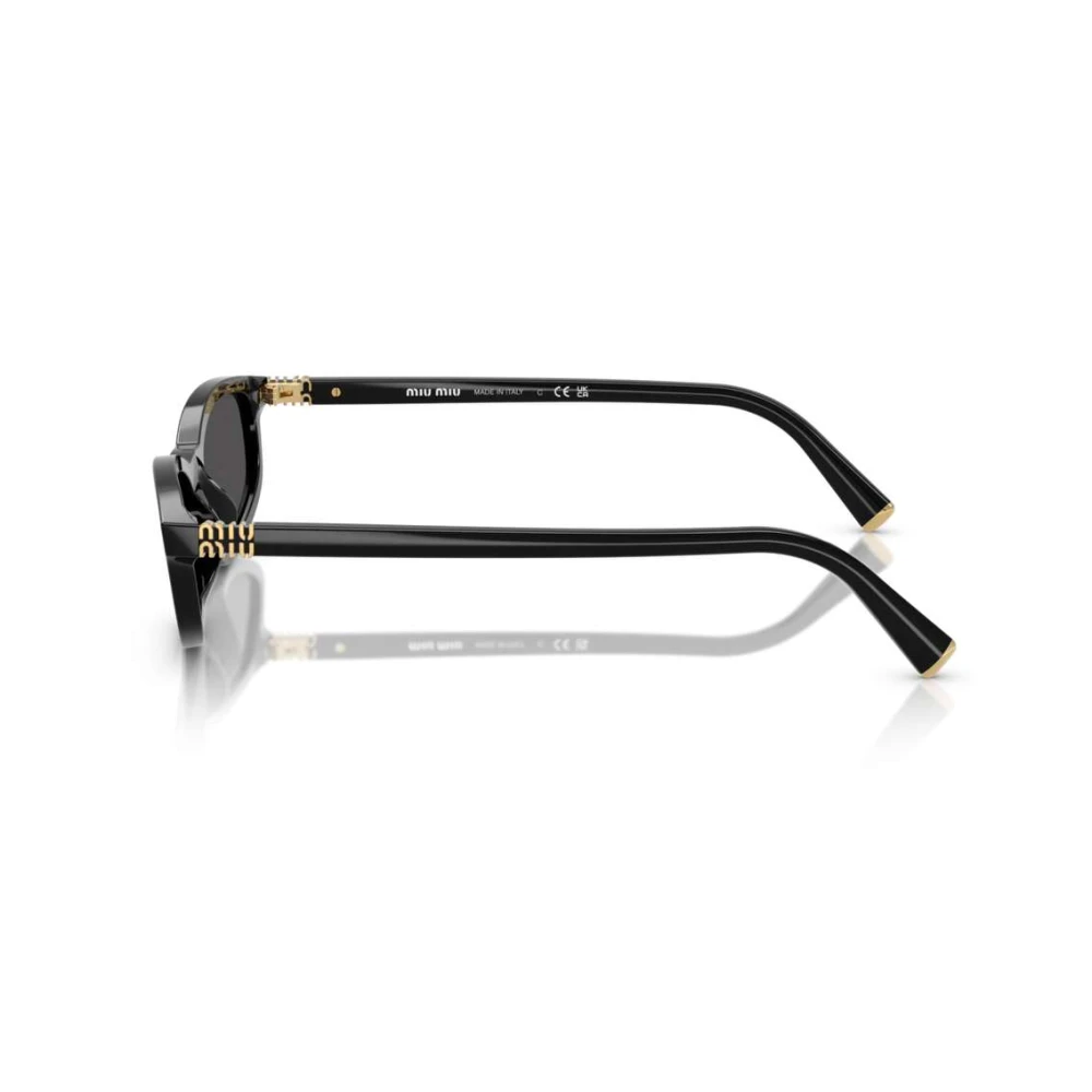 Os óculos de sol Miu Miu apresentam um formato irregular em acetato na cor preto e lentes em cinza, o modelo conta com uma combinação perfeita de inovação e é finalizado com a logo em dourado nas hastes.